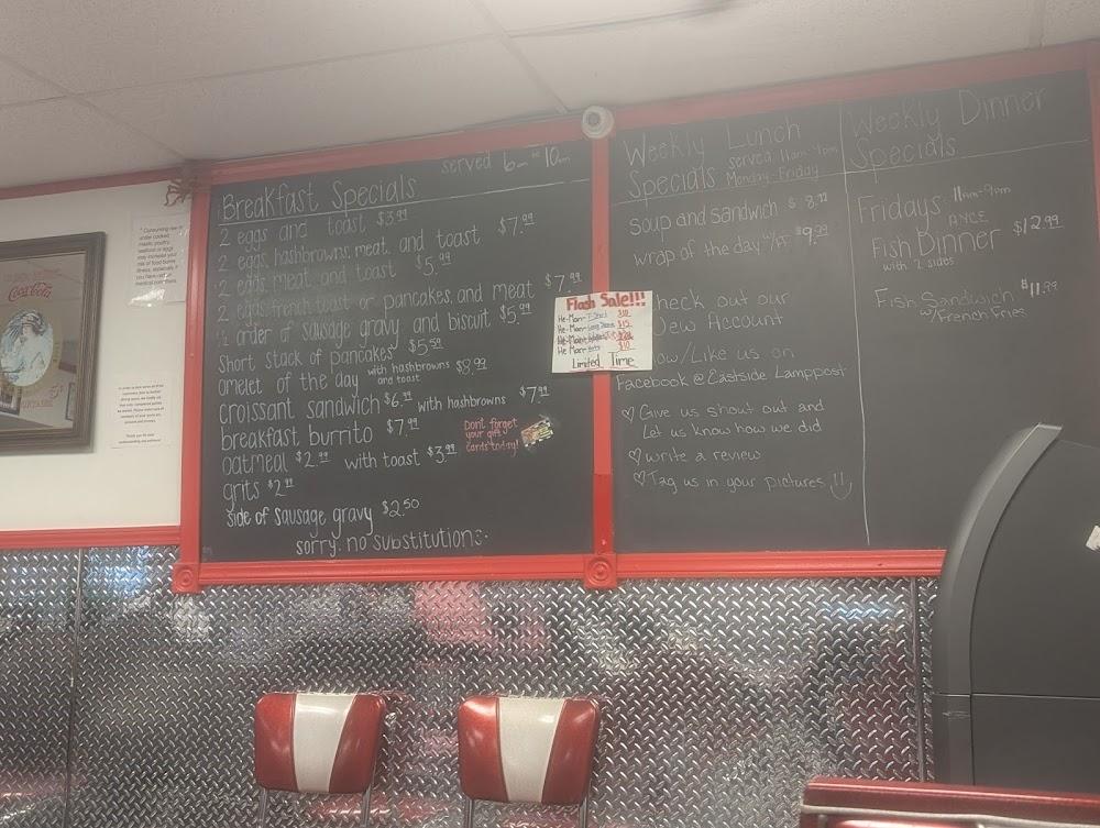 The menu at The Lampost features a variety of classic American dishes, emphasizing breakfast served all day. Popular items include the Country Fried Steak and Smoked Platter Breakfasts, with prices that are friendly for any budget. Sandwich lovers can explore options like the Turkey Rueben and Buffalo Chicken Wrap—both crowd favorites.